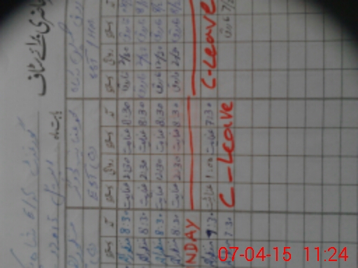 | CNIC | Full Name | Designation | R/C | Absence During Last Calender Month |