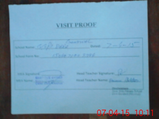 | Attendance Register | Head Teacher | MEA with School | Visit Proof |