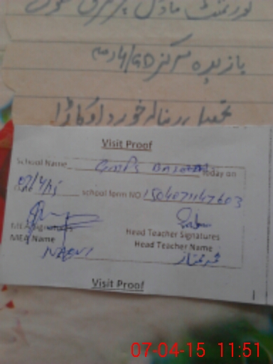 | Name: NA**** MU**** Designation: (School Headmaster's/Headmistress's) PTC/JV Phone/Cell Number: 03**** |