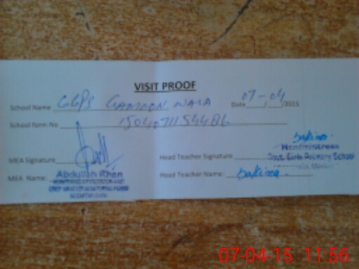 | Attendance Register | Head Teacher | MEA with School | Visit Proof |