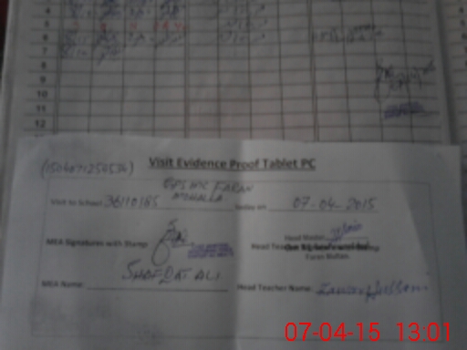 | Attendance Register | Head Teacher | MEA with School | Visit Proof |