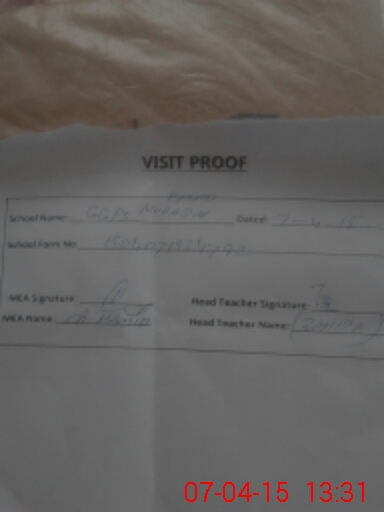 | Attendance Register | Head Teacher | MEA with School | Visit Proof |