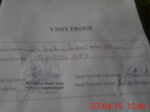 | Attendance Register | Head Teacher | MEA with School | Visit Proof |