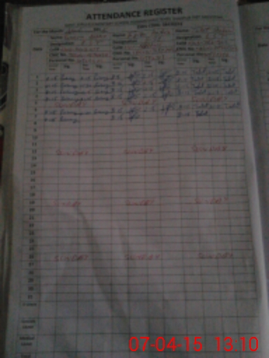 | CNIC | Full Name | Designation | R/C | Absence During Last Calender Month |