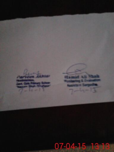 | District: SARGODHA | Tehsil: SHAHPUR | Markaz: WEGOWAL - FEMALE | Level: Middle | |