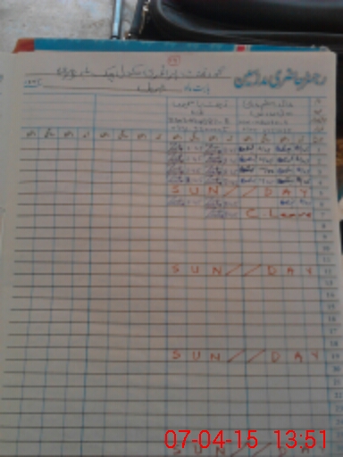 | CNIC | Full Name | Designation | R/C | Absence During Last Calender Month |