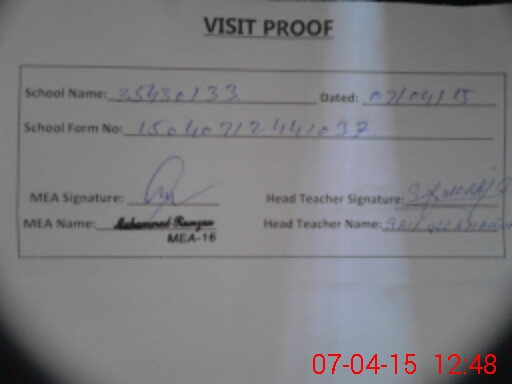 | Attendance Register | Head Teacher | MEA with School | Visit Proof |