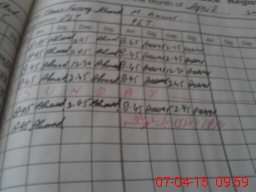| CNIC | Full Name | Designation | R/C | Absence During Last Calender Month |