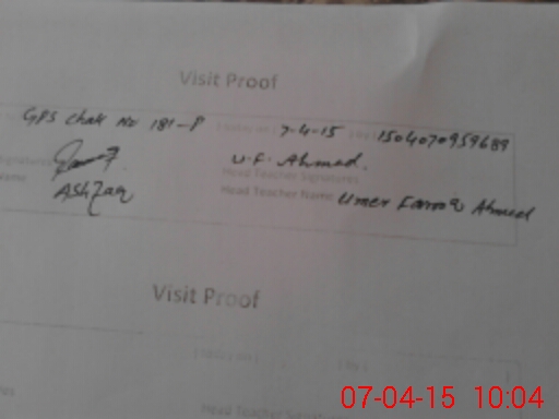 | School Visited by School Health & Nutrition Supervisor (No. of Visits) | 1 | Name1: | Saqib Iftikhar | Name2: | Nil |