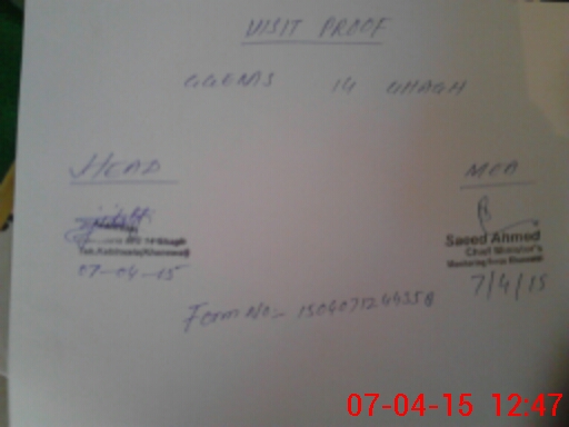 | Monitoring Date: 07-04-2015 | Start Time: 07-04-2015 11:41 AM | End Time: 07-04-2015 12:55 PM | Name of MEA: Sa**** Ah**** | |