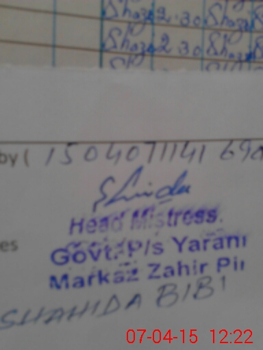 | Name: Sh**** Ya**** Designation: (School Headmaster's/Headmistress's) PST Phone/Cell Number: 03**** |