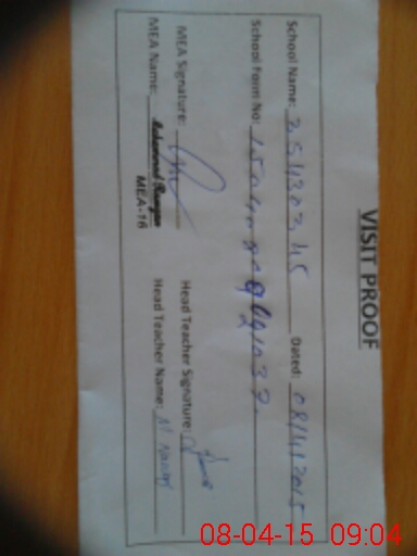 | Attendance Register | Head Teacher | MEA with School | Visit Proof |