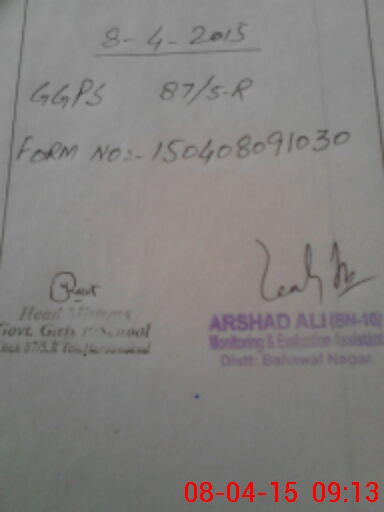 | District: BAHAWALNAGAR | Tehsil: HAROONABAD | Markaz: HND-2-FEMALE | Level: Primary | |