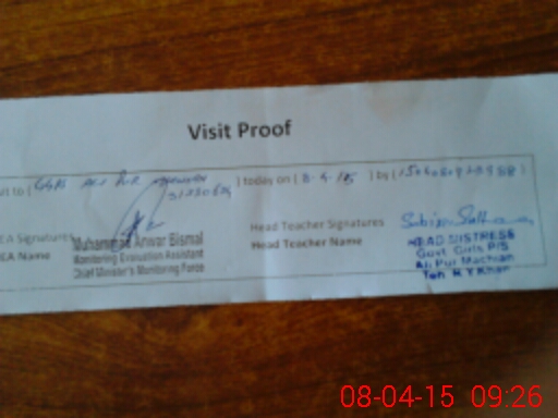 | Attendance Register | Head Teacher | MEA with School | Visit Proof |