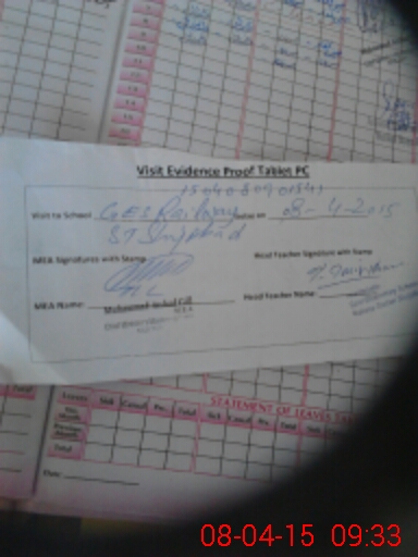 | Attendance Register | Head Teacher | MEA with School | Visit Proof |