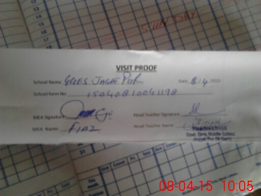 | Attendance Register | Head Teacher | MEA with School | Visit Proof |