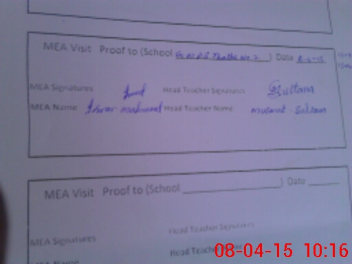 | Attendance Register | Head Teacher | MEA with School | Visit Proof |