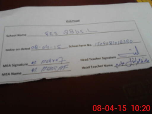 | Attendance Register | Head Teacher | MEA with School | Visit Proof |