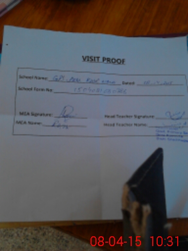 | Attendance Register | Head Teacher | MEA with School | Visit Proof |