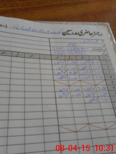 | CNIC | Full Name | Designation | R/C | Absence During Last Calender Month |