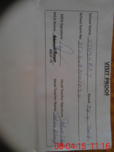 | Attendance Register | Head Teacher | MEA with School | Visit Proof |