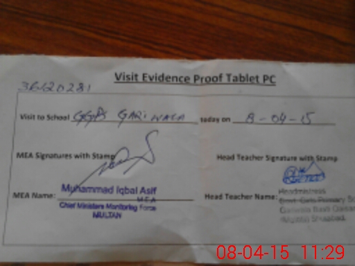 | EMIS Code: 36120281 | Name of School: GGPS GARI WALA SHUJABAD | |||