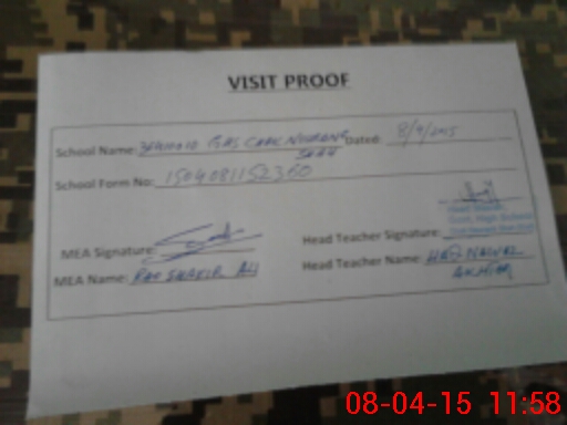 | Attendance Register | Head Teacher | MEA with School | Visit Proof |