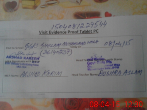| District: MULTAN | Tehsil: JALALPUR PIRWALA | Markaz: JAHAN PUR - FEMALE | Level: Primary | |
