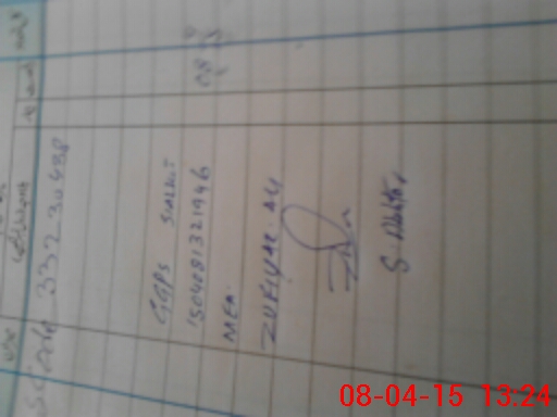 | Monitoring Date: 08-04-2015 | Start Time: 08-04-2015 01:06 PM | End Time: 08-04-2015 01:24 PM | Name of MEA: S-**** ZU**** AL**** | |