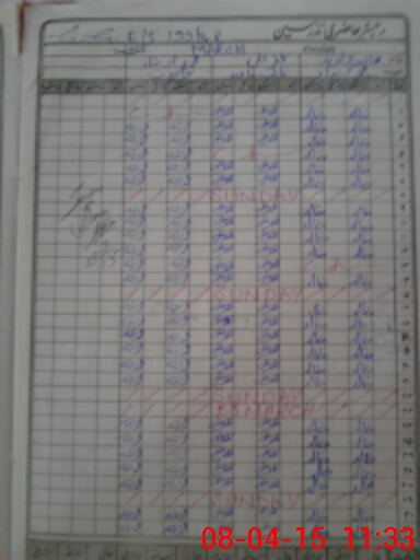 | CNIC | Full Name | Designation | R/C | Absence During Last Calender Month |