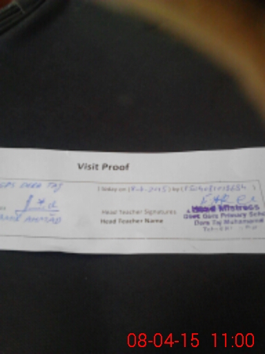 | Attendance Register | Head Teacher | MEA with School | Visit Proof |