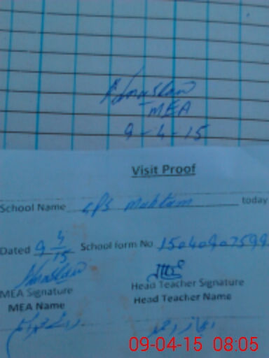 | Attendance Register | Head Teacher | MEA with School | Visit Proof |