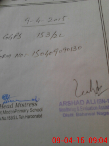 | District: BAHAWALNAGAR | Tehsil: HAROONABAD | Markaz: HND-10-FEMALE | Level: Primary | |