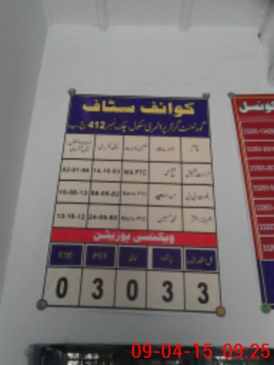 | EMIS Code: 33230609 | Name of School: GGPS CHAK NO 412 JB CHEEMIAN WALA | |||