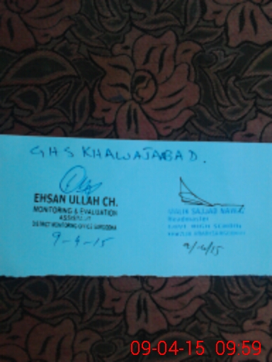 | EMIS Code: 38430032 | Name of School: GHS KHAWAJA ABAD | |||