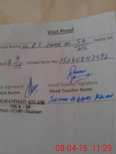 | EMIS Code: 38140209 | Name of School: GPS CHAK NO 54 ML | |||