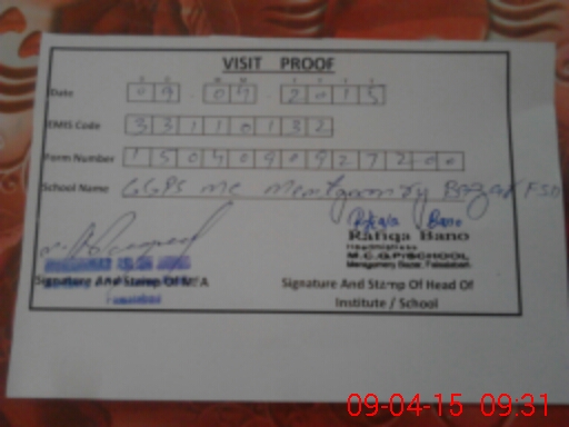 | EMIS Code: 33110132 | Name of School: GGPS MC MOTGHUMERY BAZAR FSD | |||
