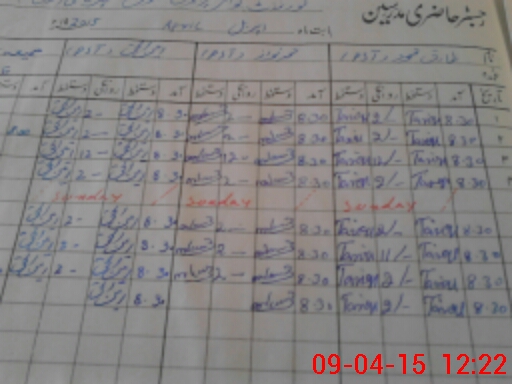 | CNIC | Full Name | Designation | R/C | Absence During Last Calender Month |