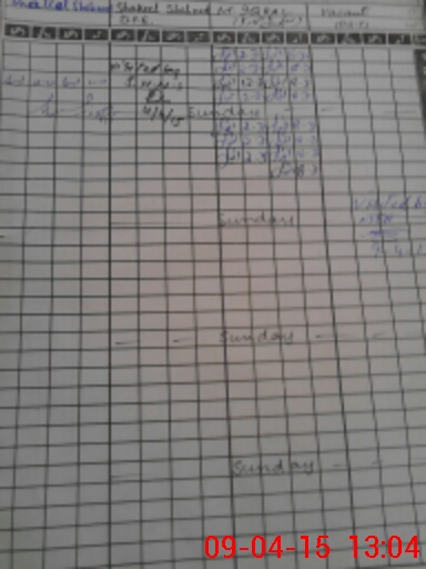 | Monitoring Date: 09-04-2015 | Start Time: 09-04-2015 12:15 PM | End Time: 09-04-2015 01:12 PM | Name of MEA: Z.**** Ba**** Al**** | |