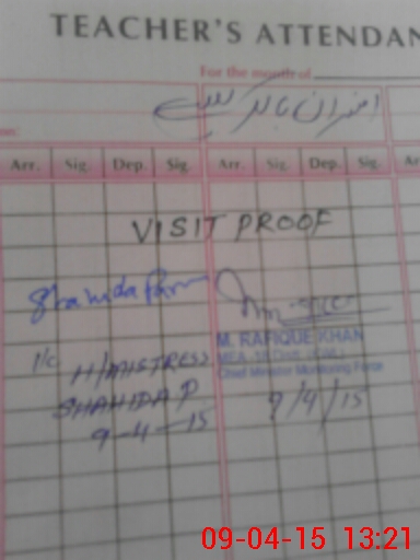 | Attendance Register | Head Teacher | MEA with School | Visit Proof |