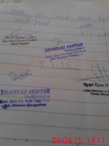| District: SARGODHA | Tehsil: BHALWAL | Markaz: PURANA BHALWAL - FEMALE | Level: Middle | |