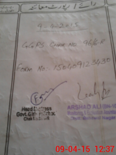 | District: BAHAWALNAGAR | Tehsil: HAROONABAD | Markaz: HND-11-FEMALE | Level: Primary | |