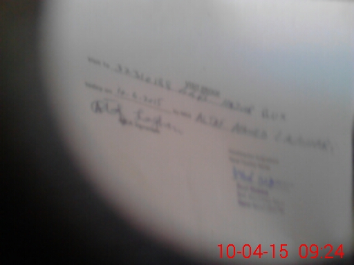 | Monitoring Date: 10-04-2015 | Start Time: 10-04-2015 09:08 AM | End Time: 10-04-2015 09:26 AM | Name of MEA: Al**** Ah**** Li**** | |