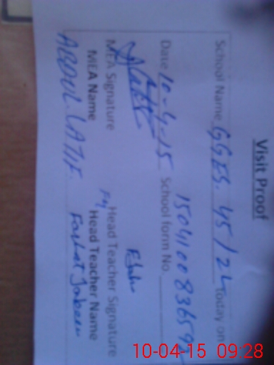 | Attendance Register | Head Teacher | MEA with School | Visit Proof |