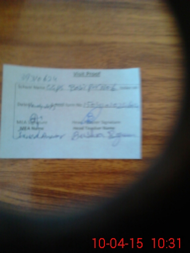 | Attendance Register | Head Teacher | MEA with School | Visit Proof |