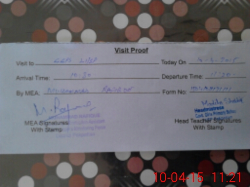 | Attendance Register | Head Teacher | MEA with School | Visit Proof |