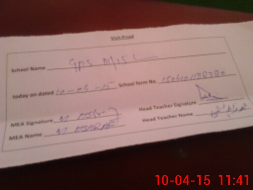 | Attendance Register | Head Teacher | MEA with School | Visit Proof |
