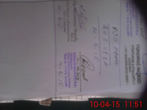 | School Visited by School Health & Nutrition Supervisor (No. of Visits) | 1 | Name1: | TAHIR MAHMOOD | Name2: | |