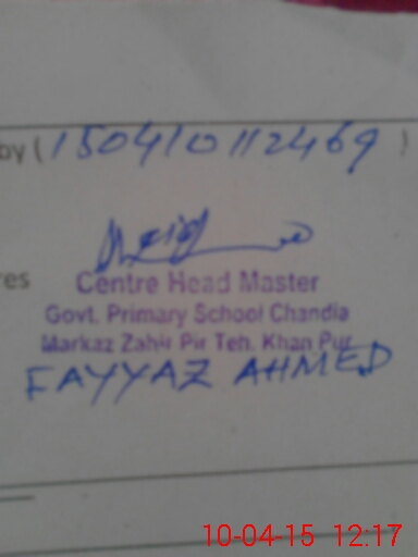 | EMIS Code: 31310186 | Name of School: GPS CHANDIA (After Noon) | |||