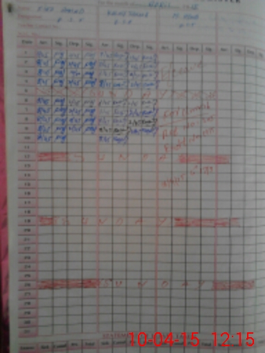 | CNIC | Full Name | Designation | R/C | Absence During Last Calender Month |
